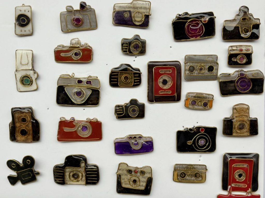 ライカ ローライ コダックなどフィルム時代のカメラをイメージしたピンバッジを展示販売いたします
